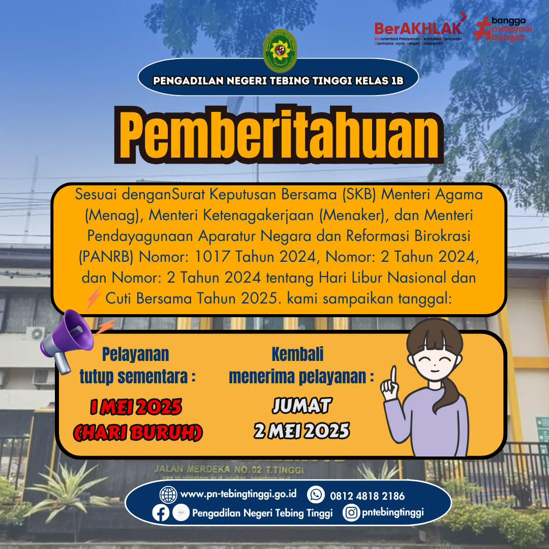 Pengumuman Hari Libur Nasional 1 Mei 2025 (Hari Buruh) on Rabu, 30 April 2025. Posted in Berita / Pengumuman Terkini Tweet